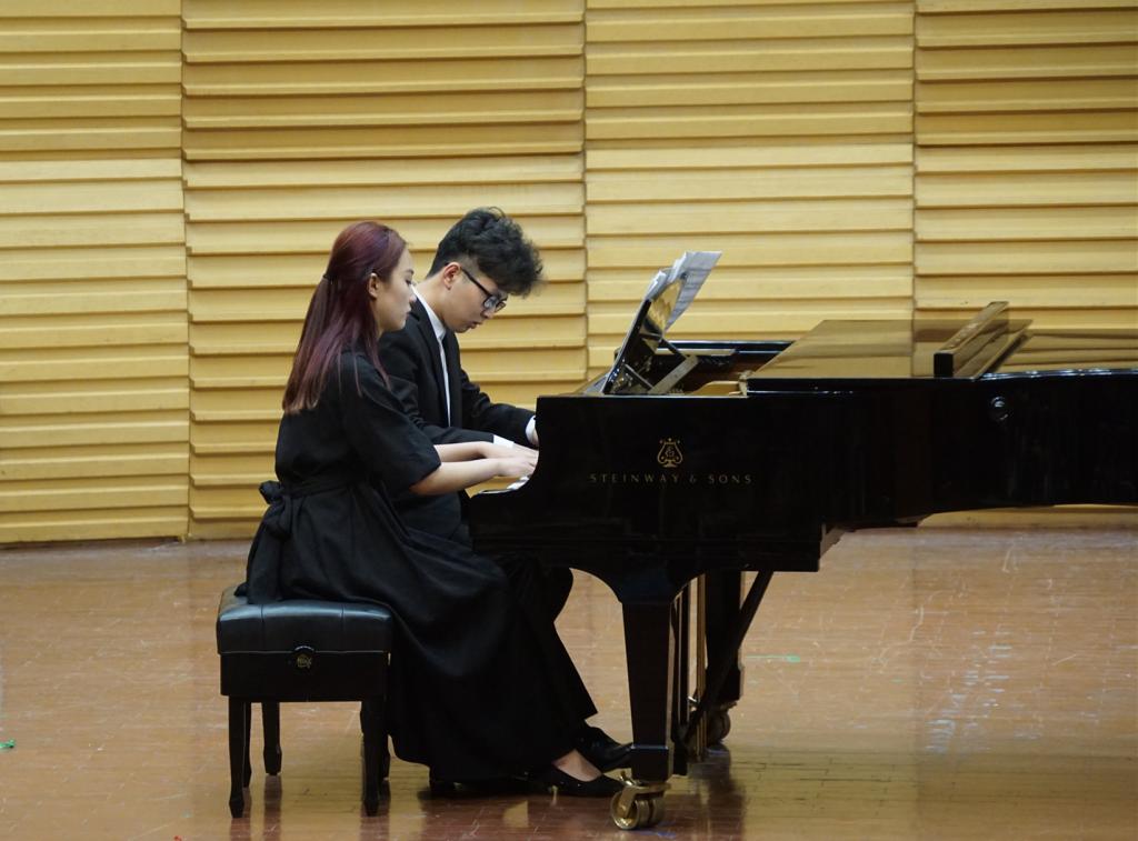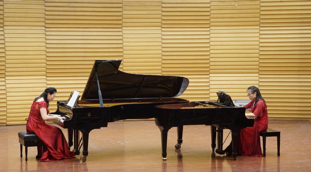 音乐会汇集了我校音乐学院声乐系、管弦系、民乐系、钢琴系优秀毕业生的13首精彩作品。打击乐作品《仙境中的桉树》拉开音乐会序幕,小提琴二重奏《帕萨卡利亚》悦耳动听,华彩绚丽;双钢琴作品《西班牙狂想曲》《传奇 Op.59-6# c小调》以及《动物狂欢节》,除了具有鲜明的民族风格与叙事性之外,绚烂多姿的音符让人充分领略到乐器之王的魅力;二胡重奏《游击队之歌》曲调轻快流畅又生动活泼;双长笛与钢琴三重奏《G大调奏鸣曲》音乐语言朴素精炼,让人久久难忘;二重唱《今夜》《相依为命的祖国》及《让我们携手同行》《待到微风轻轻吹过》打动了台下观众的心;竹笛四重奏《儿童舞曲》清脆悦耳宛转悠扬。最后,音乐会在一首带有西域风情的阮重奏作品《丝路驼铃》中圆满结束。