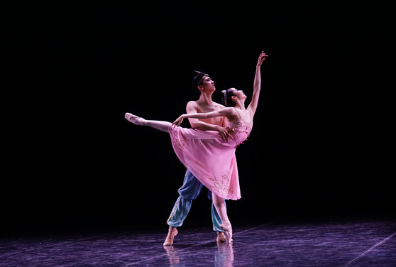 在经典舞剧片段和芭蕾作品展示中,《古典女子四人舞》选段、《男子四人舞》选段,展示了女子的轻柔、优雅,男子的绅士、强健,刚柔并济,各尽其美。俄罗斯学派作品《戴安娜与阿克顿》,丹麦学派的《冈扎诺的花季》,古典芭蕾舞剧双人舞《海盗》,现代舞《母亲》《天黑请闭眼》以及芭蕾舞《黄河》的第四乐章,每段作品都让观众深切地感受着精湛细腻的肢体语言散发出的高贵气质,芭蕾舞演员们在一段段优雅默契的配合里演绎出恢弘磅礴的气势,征服了在场的观众。