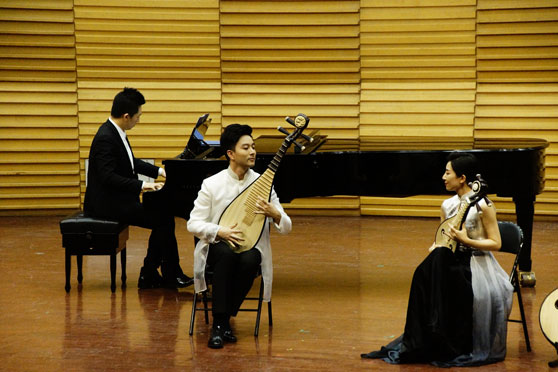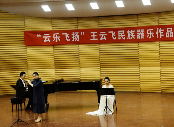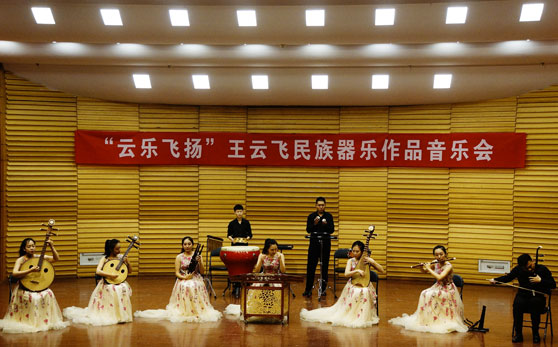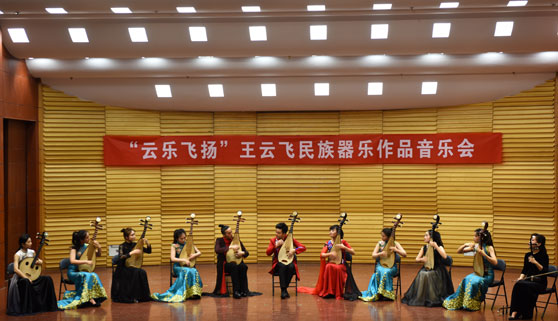 “云乐飞扬”民族器乐作品音乐会巡演包括浙江音乐学院青年作曲家王云飞副教授创作的7首民族室内乐作品,其中3首作品为国家艺术基金小型舞台项目。《紫竹》《水境》《山哈》是体现江浙文化的“吴越新韵”,而《楼兰印象》《雪山上飞翔的鹰》则用声音阐释了“一带一路”上的西域文化特色;《无极》《武生》则是对中国传统文化的现代性解读。我校音乐学院民乐系和声乐系的学生也作为特邀嘉宾参与了音乐会演出,与浙江音乐学院国乐系的师生进行了近距离的互动,并被邀参加下一步的国家艺术基金项目巡演。