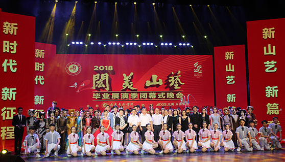 6月22日,在喜庆热烈的氛围中,迎接山艺60周年华诞2018“闳美山艺”毕业展演季系列活动闭幕式晚会在学校文东校区艺术剧场三楼大剧场举行。山东省教育电视台台长邢顺峰,山东艺术学院党委书记马东骅、副院长刘晓静、纪委书记兰绍彤,山东省高等学校艺术教育联盟主席高启光,学校各职能部门、二级学院负责人、师生及社会各界人士800余人观看晚会。