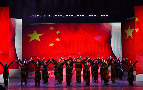晚会在我校青年交响乐团带来的《序曲》和《北京喜讯到边寨》中激情开场,热情洋溢的演奏和经典畅达的旋律拉开了晚会的序幕;歌曲《和谐大家庭》由我校音乐学院翟琪同学为现场观众倾情奉上,唱出了在山艺这个大集体中,大家朝夕相处、相知相惜,在共同的学习和生活中凝聚成了一个团结向上的和谐大家庭;舞蹈学院同学带来的《桃夭》又把观众带进了一幅“灼灼其华,宜其室家”的唯美画卷中;萨克斯四重奏《一步之遥》,悠扬的回旋加上婉转的节奏,让乐曲充满了戏剧性与灵动感;小品《我叫马宝儿》则向观众展现了一个名叫马宝儿的年轻人心灵的呐喊;由我校泉韵女子弹拨乐团演奏的《红高粱随想》,汇集琵琶、柳琴、中阮、大阮等民族乐器,生动讲述了女主人公九儿的那段充满爱恨情仇的动人故事;由我校国际艺术交流学院2016届优秀毕业生莫荼荼与舞蹈学院同学共同带来的《紫薇路6000》,将大家重新带回到了那段美好如初的大学时光;四郎思母冒险出关的京剧选段《坐宫》,抑扬顿挫的唱腔和腾转挪移的身段尽显戏曲学院学生们扎实的舞台功底;音乐教育学院同学带来的经典音乐剧《猫》片段,以其跌宕起伏的故事情节、精彩的音乐舞蹈再次引起全场观众的共鸣;晚会在一面指引前进方向的不朽旗帜下,在一首永远高高飘扬的炽热赞歌中,在一支专为本次晚会精心编排的舞蹈《红旗颂》中落下帷幕。
