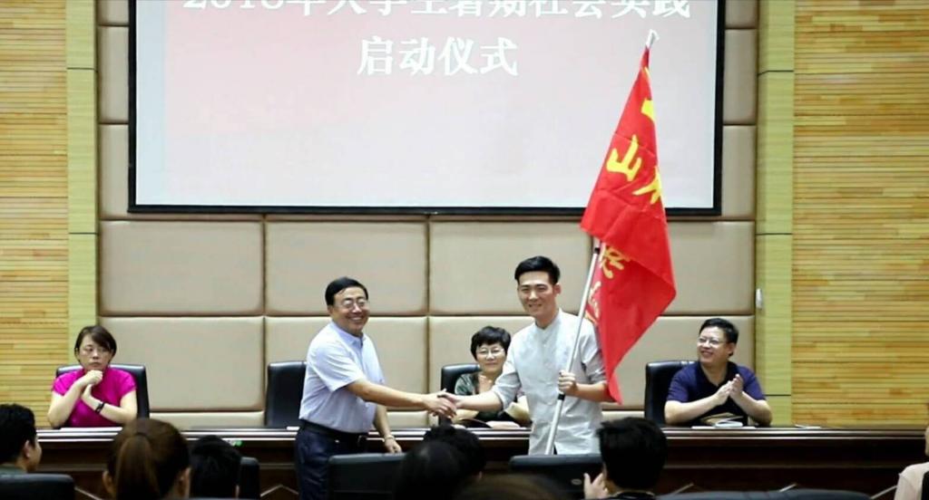7月6日下午,山东艺术学院2018年“服务黄河滩区,助力乡村振兴”大学生暑期社会实践启动仪式在长清校区办公楼二楼报告厅举行,校党委副书记孔祥华出席并为大学生暑期社会实践团授旗。校团委书记孔宪坤主持仪式。