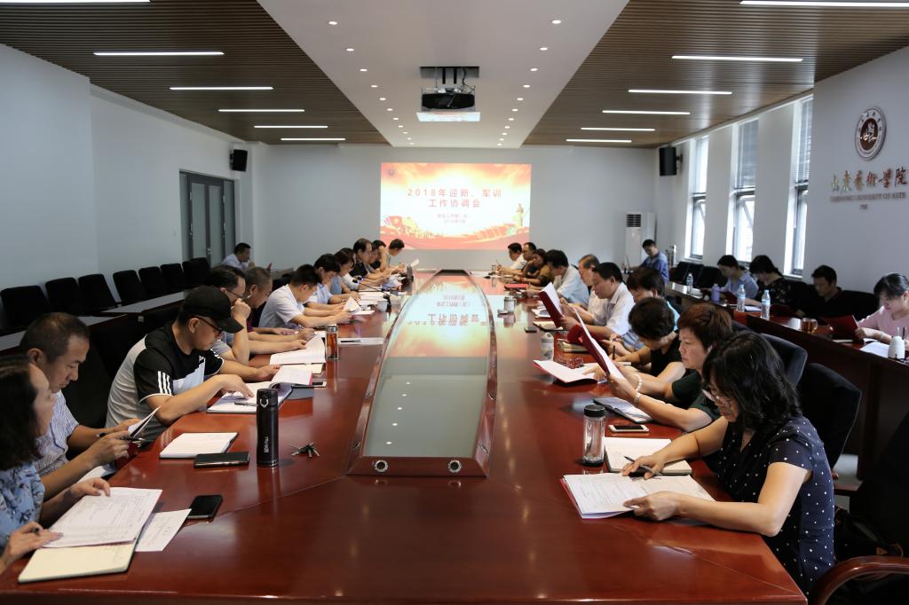 9月5日上午,学校召开2018年迎新、军训准备工作协调会。校党委副书记孔祥华主持会议并讲话。党办院办、宣传部、教务处、研究生处、后勤管理处、财务处、保卫处、国际交流合作处、公共课教学部、图书馆、信息中心等有关职能部门负责人,各二级学院党总支副书记,学生处、团委全体干部参加会议。