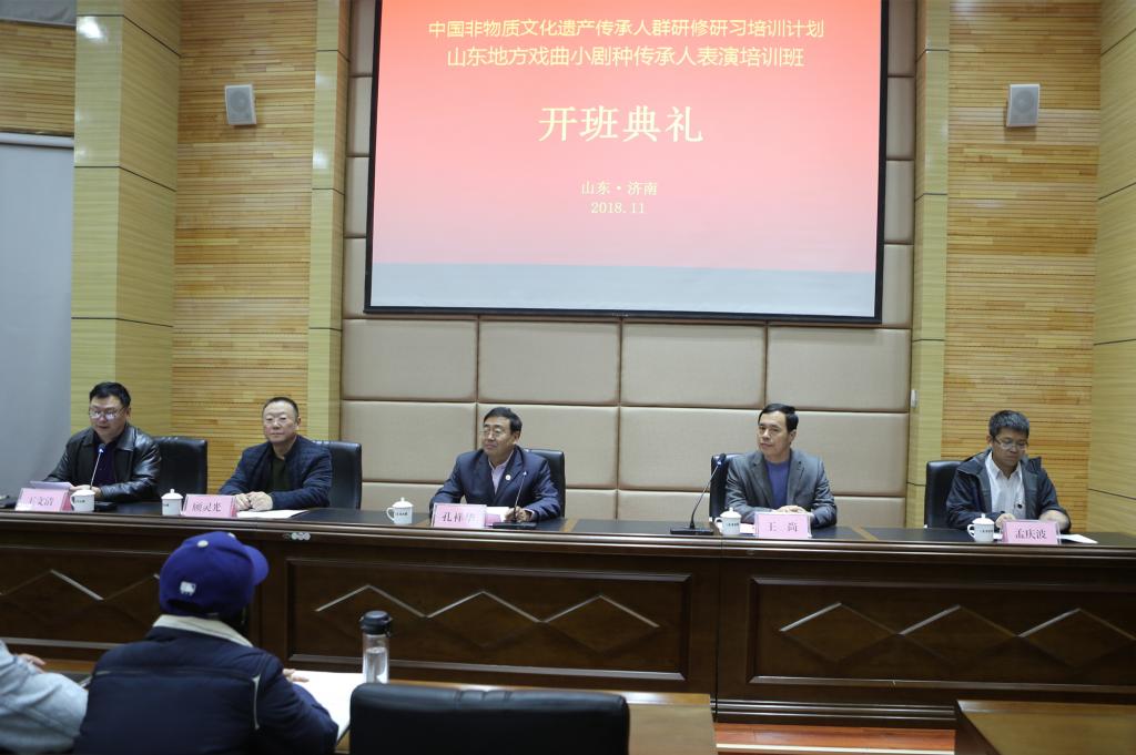 11月8日上午,由文化和旅游部、教育部主办、山东省文化和旅游厅协办、山东艺术学院承办的中国非物质文化遗产传承人群研修研习培训计划·山东地方戏曲小剧种传承人表演培训班开班典礼,在长清校区办公楼二楼学术报告厅举行。山东省文化和旅游厅非物质文化遗产处副处长、二级调研员王尚,山东艺术学院党委副书记孔祥华,艺术实践与创作处处长顾灵光,戏曲学院院长王文清、党总支书记孟庆波出席开班仪式。山东地方戏曲小剧种传承人表演培训班全体学员、戏曲学院师生代表参加开班式。仪式由王文清主持。