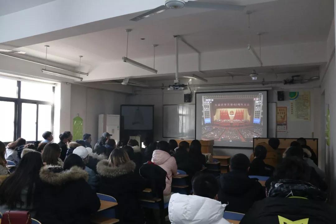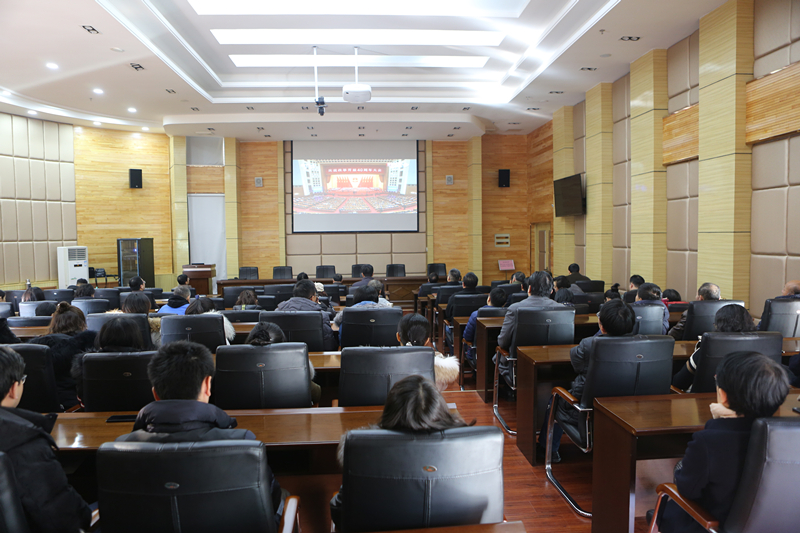校党委书记马东骅、院长王力克、党委副书记孔祥华、副院长刘晓静、纪委书记兰绍彤和机关党总支全体工作人员在办公楼二楼学术报告厅集体观看直播。其他各党总支通过各种方式和途径组织收看了大会直播。