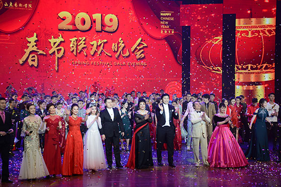 春回大地百花艳,节至人间万象新,金猪拱福千家悦,和声四海万户春。1月18日,山东艺术学院文东校区艺术剧场成为了师生联欢的舞台、观众欢乐的海洋,山东艺术学院2019年春节联欢晚会在这里隆重举行。学校党委书记马东骅、院长王力克,省审计厅原巡视员李建军,省教育厅体育卫生与艺术教育处处长孙乐为,山东影视传媒集团副总经理、山东电影家协会副主席、国家一级艺术指导牛烟生,学校党委副书记孔祥华、纪委书记兰绍彤,学校离退休老领导代表、全校教职员工及社会各界人士近两千人一同观看晚会。晚会由大都文化传播有限公司友情赞助。