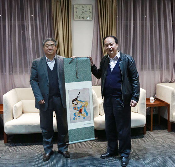 演出前,马东骅会见了张稷一行,就学校改革发展、艺术实践与创作和舞剧《丝路花雨》创演等情况进行了座谈,并互赠纪念品。