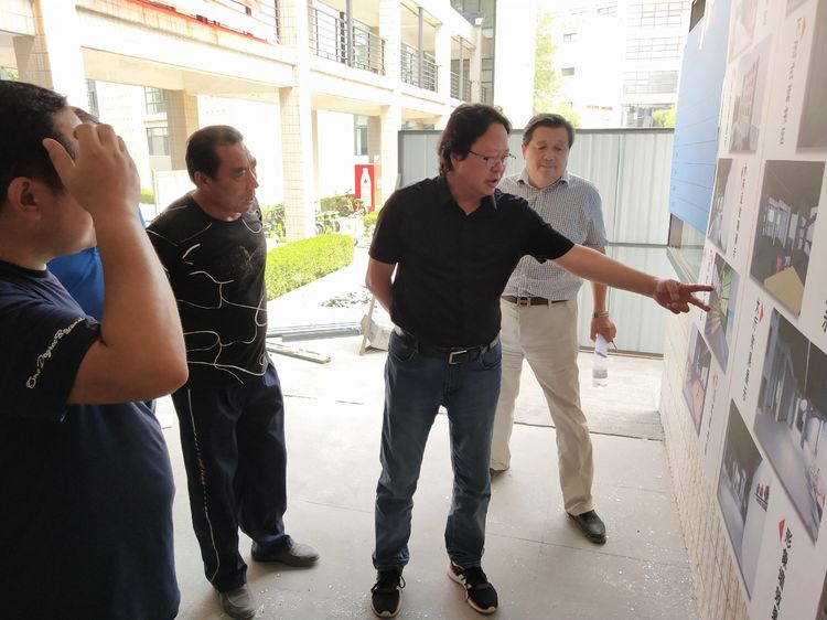 7月18日,院长王力克、副院长兰绍彤视察长清校区美术学院A区、图书馆、艺文楼、舞蹈楼等改造提升施工现场。