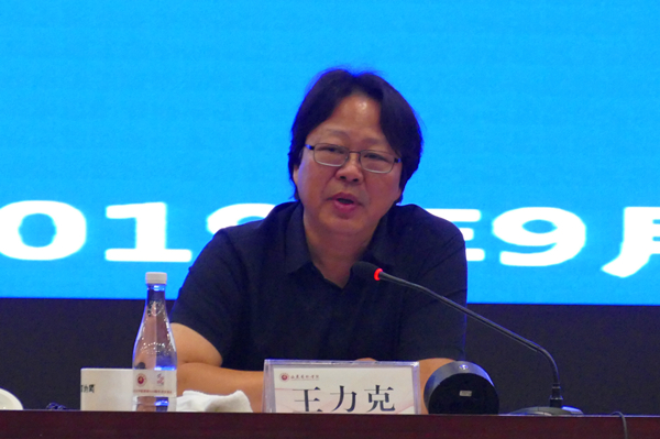 王力克总结回顾了2018年以来学校申博和学科建设工作情况。一是深入推进学校博士学位授予单位申建工作。学校相关单位对申博任务进行了分解,明确了建设目标、任务和措施,全面推进相关工作,并取得初步成绩。二是扎实推进学科建设工作。音乐与舞蹈学学科被增列为山东省培育建设一流学科,制定了一流学科目标任务书和考评体系,起草了学科建设管理办法。三是学科建设业绩突出。获批国家级、省部级立项创历史新高,科研经费投入持续增长,高水平学术论文和著作数量较往年大幅提升。在肯定成绩的同时,王力克还深入分析了各学科存在的问题,并提出了具体要求。