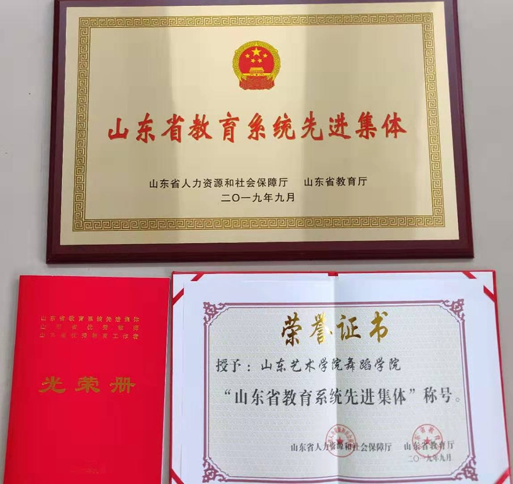 9月10日,山东省庆祝2019年教师节暨教育系统先进集体和先进个人表彰大会隆重举行,省委书记刘家义,省委副书记、省长龚正出席会议并讲话。表彰大会上,通报表彰了近年来涌现出的一批为我省教育事业作出了积极贡献的教育系统先进集体和先进个人。我校舞蹈学院被授予“山东省教育系统先进集体”称号。