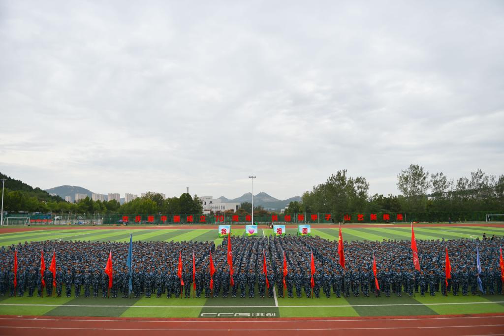 上午9时30分,在庄严的升旗仪式和嘹亮的国歌声中,2019级新生开学典礼暨军训汇报大会拉开了帷幕。分列式上,2019级新生各方队意气风发、斗志昂扬,迈着整齐的步伐,以崭新的姿态依次通过主席台前,接受学校领导、部队领导和老师们的检阅。他们用威武的军姿展示了此次军训的丰硕成果,用铿锵的步伐和嘹亮的口号展现了当代大学生朝气蓬勃的精神风貌。随后,我校大学生军训教官团表演了特种战术演练,武警部队山东省总队机动支队教官展示了实战对抗演练,2019级新生进行了擒拿格斗基本动作和刺杀基本动作表演,以及为庆祝新中国成立70周年而创作编排的节目《红旗·飘》。他们动作刚劲有力、气势如虹,赢得现场阵阵热烈掌声。