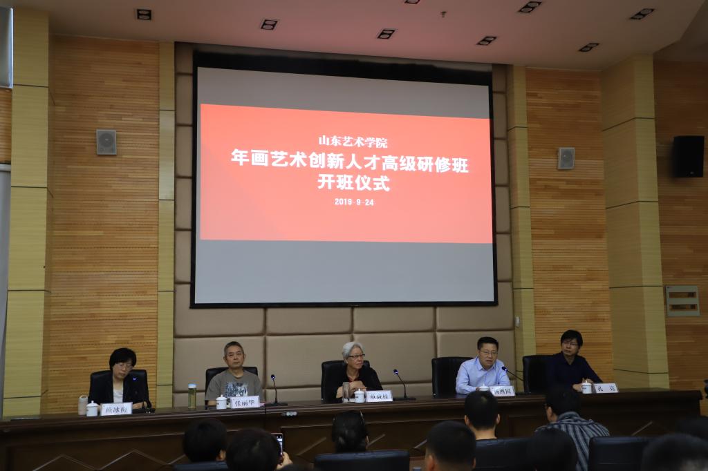9月24日,学校在长清校区办公楼二楼报告厅举行年画艺术创新人才高级研修班开班仪式。副院长杨西国出席开班仪式并讲话,学校年画艺术研究中心名誉主任单应桂教授,研究中心副主任张丽华教授、赖冰梅副教授,党办院办、美术学院负责人及30名研修班学员参加开班仪式。开班仪式由赖冰梅主持。