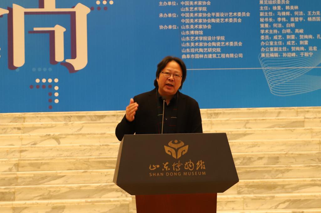 白明在致辞中首先对山东艺术学院10年来对组织展览和学术工作表示感谢。他讲到,邀请展最大的特点是作品让大家感觉既熟悉又陌生。熟悉是来源于艺术家们对传统文化的学养、对著名艺术家的熟知、对艺术专业创作的了解。陌生来源于艺术家们在追求艺术本质的过程中新的发现与创作,特别是通过跨界融合带来的陌生视觉感受。对泥土、火焰的单一认知成就了中国陶瓷艺术的辉煌,让艺术家们成为受益者的同时,又成为困惑者。希望艺术家们重新认知泥土、火焰这些古老材料的表情和性格,让传统材料在新的艺术领域空间中,表现出新的能量与意志,焕发出新的生命力。面向未来,将继续扩大陶瓷艺术的艺术界别、国籍的范围,推动陶瓷艺术创作更好的进行艺术表达。