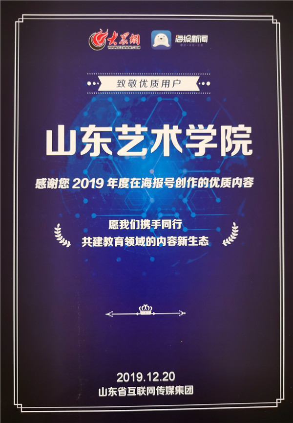 12月20日,由山东省互联网传媒集团主办的山东高校品牌建设与传播管理研讨会暨2019山东最佳社会声誉高校颁奖仪式在临沂大学举行,会议现场发布了“2019年度山东最佳社会声誉高校”榜单与“2019年度山东最具影响力高校政务新媒体榜”榜单。我校荣获“2019年度山东最佳社会声誉高校”“2019年度山东最具影响力高校政务新媒体”和大众网海报新闻2019年度优质用户全部三个奖项。山东省教育厅(省委教育工委)办公室调研员、新闻中心主任宋全政,省网媒集团党委常委、副总经理姜长勇为获奖单位颁奖。全省108所院校参与评选活动。