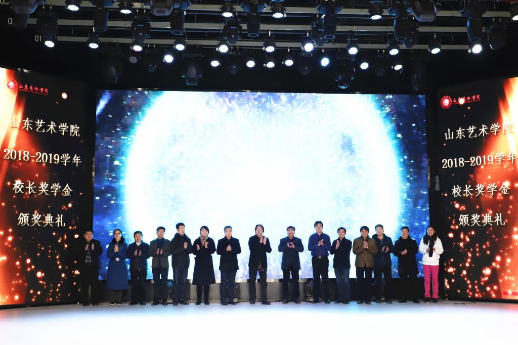 王力克为获奖学生一一颁发荣誉证书,与获奖学生合影留念并讲话。他首先代表学校向2018—2019学年校长奖学金获奖同学表示热烈祝贺。接着,他带领大家一起回顾了2019年学校各方面发生的变化、取得的成绩。他讲到,今天是2019年的最后一天,在这个特殊的日子里,回顾即将过去的一年,是山艺近四十年来成绩最突出、变化最大的一年,这是一代代山艺人砥砺奋进、长期积累的结果。一年来,学校各方面成果丰硕、成绩斐然。王力克如数家珍地列举了其中几项:学校成立了年画艺术研究中心,并被教育部认定为2019年全国普通高校中华优秀传统文化传承基地;成功承办第十二届中国音乐金钟奖全国声乐选拔赛,我校师生在下半年的决赛中取得优异成绩;博士学位授予单位申建工作取得阶段性成果;学校被确定为山东省十所重点高校之一;我校设计制作的国庆70周年山东彩车“国泰民安”精彩亮相天安门广场;成立了书法学院,奋力走在全国高等书法教育教学研究前列;电影艺术产学研基地在青岛西海岸新区开工奠基;成功主办第三届国际海洋油画学术高峰论坛、全国歌剧理论与创作研讨会暨首届优秀歌剧评论征集比赛等全国性重要会议活动;拍摄出品的电影《生死30分》在中央电视台电影频道播出并取得高收视率,广受关注和好评;改造提升了部分二级学院教学办公场所,建设教育教学中心,办学条件进一步改善,初具现代化大学面貌。这一年,山艺人精神面貌焕然一新,自信满满。2019年,必将在山艺迈向特色鲜明、国内一流的现代化高水平艺术大学的征途中,写下浓墨重彩的一笔。