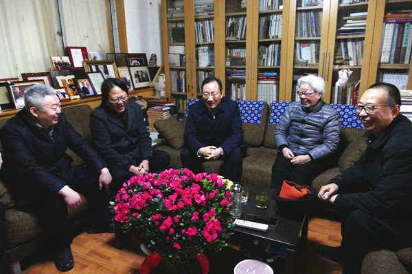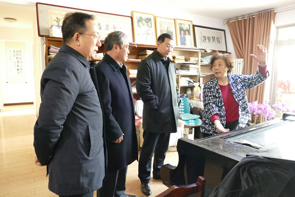 老艺术家们对关志鸥部长等领导在春节前专程看望自己深受感动,表示感谢。曹克恩向关志鸥部长详细介绍了自己的艺术学习经历和在山艺的工作情况,饶有兴致地向关志鸥部长介绍了自己使用的钢琴,并现场演奏,优美的旋律赢得了大家热烈的掌声。单应桂介绍了一年来,在省委宣传部的支持和帮助下,山东首个“年画艺术研究中心”在山艺成立,并被教育部评定为2019年全国普通高校中华优秀传统文化传承基地。她表示将对山东年画的教学、科研、传承和传播继续发挥余热,繁荣年画优秀传统文化。