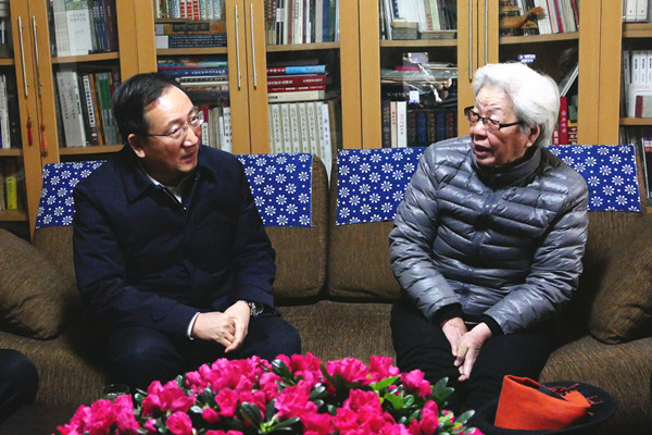在庚子鼠年春节到来之际,山东省委常委、宣传部部长、教育工委书记关志鸥,省委宣传部副部长程守田来到我校,走访慰问曹克恩、单应桂教授。山东省文联主席潘鲁生、副主席王映海,省委宣传部文艺处处长王伟,山东省美协常务副主席张宜,学院党委书记马东骅、院长王力克、副院长兰绍彤、党委委员苏茂兴等陪同走访。