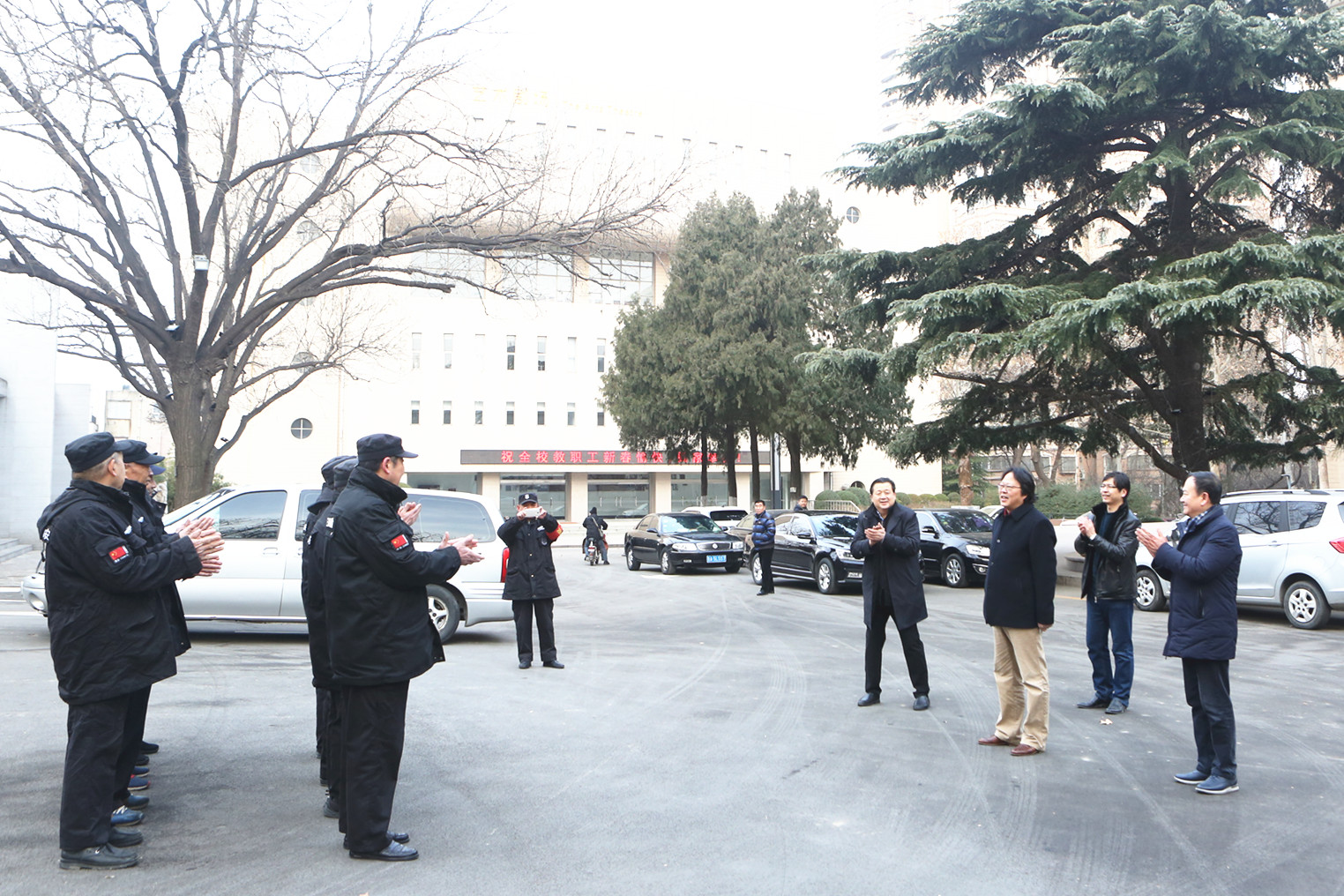 王力克一行来到文东校区保健科卫生室、学生公寓及校门值勤室,长清校区办公楼值班室、校门值勤室、教职工宿舍物业值班室等处,了解安全保卫、物业服务、医疗保障等情况,看望慰问值班人员。每到一处,校领导与值班人员亲切握手交谈,悉心询问大家的工作、生活等情况,对他们放弃假期休息时间坚守岗位的无私奉献精神以及为学校后勤保障和安全稳定工作作出的贡献,表示诚挚的敬意和衷心的感谢,向他们致以新年问候和美好祝福,并送上慰问品。王力克要求,各有关单位要切实安排好值班工作人员春节期间的工作和生活,做好节日期间各项安全保障服务工作,特别要做好新型冠状病毒预防和消防安全工作,让广大师生度过一个欢乐、祥和、温暖的新春佳节。坚守岗位的干部职工纷纷表示,感谢学校领导的亲切关怀,一定牢记职责、坚守岗位、扎实工作,保质保量完成节日期间工作任务,全力维护校园和谐稳定。