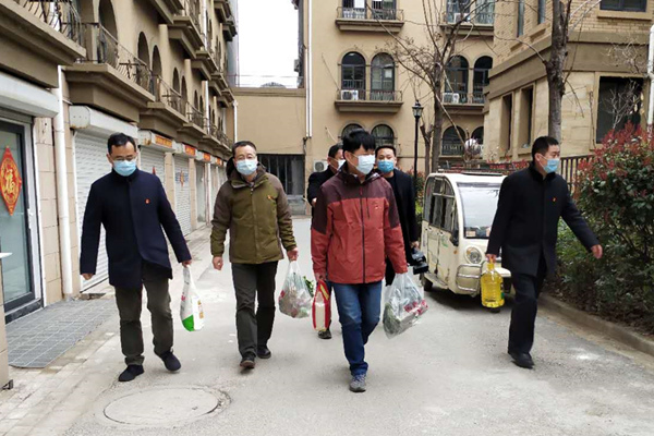 在繁荣街社区,工作组对所辖10个住宅小区进行了全面摸排。繁荣街社区属于老城区,居民点比较分散,10个住宅小区管理模式多样,有属地单位管理、社区代管、社区居委会管理、物业管理等不同情况,还有两个小区不具备封管条件,疫情防控压力较大。工作组会同运河街道办事处、社区党总支加强对疫情防控和居民生活保障的指导、协调,进一步提高认识,强化责任,落实防控措施,确保工作持续向好。针对社区体温检测设备不足问题,工作组通过学校联系渠道,协助社区购置红外线测温枪20把。工作组了解到康城小区,有一户从外省返乡居家隔离人员,急需采购一批生活用品,正在社区的工作组同志与小区服务人员将购来的用品送到隔离人员家中。
