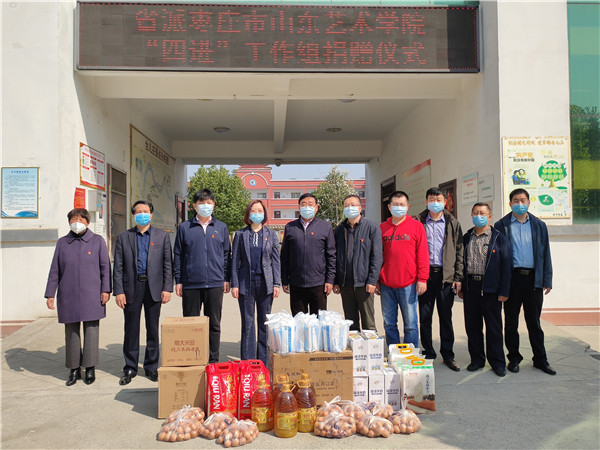 工作组工作的顺利开展,得益于学校党委的亲切关怀和大力支持。党委书记马东骅指出,选派干部下沉基层工作是省委做出的重要工作部署,对于统筹推进疫情防控和经济社会发展具有重要意义。他要求工作组成员认真落实省委的工作要求,服从命令、听从指挥、忠于职守、安全防护,以高度的政治自觉和强烈的责任担当,高质量完成所承担的工作任务,不辜负省委和学校的期望。党委副书记、院长王力克指出,这次选派5名干部下沉基层参与地方疫情防控和经济社会发展,是学校党委的信任,是一项光荣的任务,工作组一言一行都代表学校的形象,要发挥学校优势,担当作为,攻坚克难,在基层工作中做出山艺贡献。自入驻台儿庄区以来,马东骅、王力克等学校领导通过电话等形式慰问工作组工作各位同志。在得知工作点急需测温枪、口罩等疫情防控物品等情况时,学校迅速多方联系并拨付资金2万元,购买疫情防控物资捐赠给两个社区工作点和粮、油、蛋、奶等生活日用品慰问困难群众。