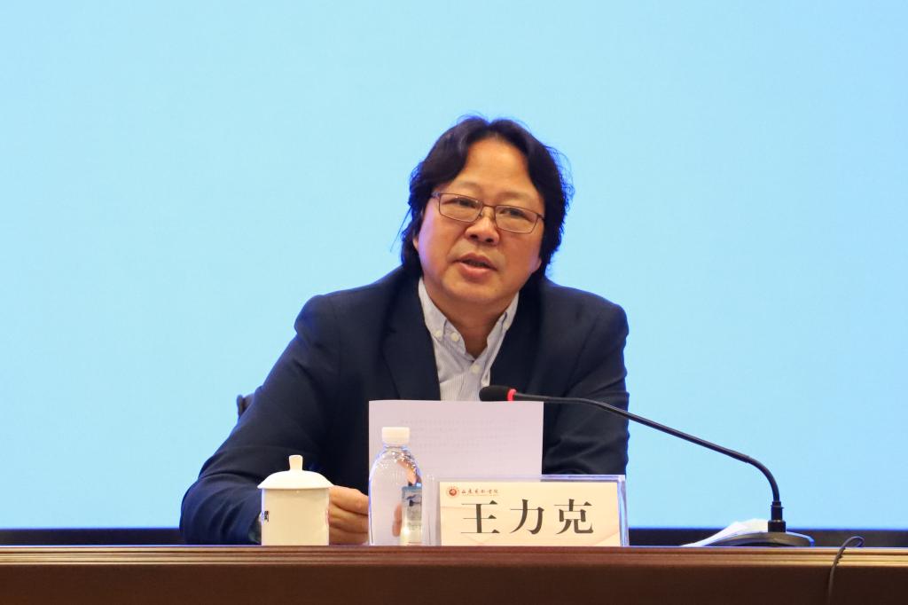 王力克回顾总结了学校2019年主要工作。一是党的建设得到了全面加强。深入开展了“不忘初心、牢记使命”主题教育,认真抓好各级党组织理论中心组学习和教职工政治学习。10部作品登上“学习强国”平台。被评为“2018—2019年度山东教育政务新媒体先进单位”“2019年度山东最佳社会声誉高校”。开展了处级干部集中调整工作,完成了全校17个党总支、64个党支部换届选举工作。制定了加强和改进新时代统一战线工作的实施意见。召开了全面从严治党工作会议,开展了纪委内设机构改革,完善了重点岗位重点领域监督制度。3个基层党组织获批山东党建工作标杆院系、样板支部培育创建单位,2名同志、1个基层党组织荣获山东教育系统优秀共产党员、优秀党务工作者、先进基层党组织荣誉称号。二是内涵建设和办学实力有了新提升。4个专业获批国家级一流本科专业建设点,7个专业获批省级一流本科专业建设点。成立了全国艺术类院校第一个书法学院。被确立为我省申博重点支持高校。获得国家级科研立项2项、部省级14项、其他立项88项;获批山东省优秀社科成果奖、高等学校优秀成果奖等科研奖励11项;教师发表中文核心期刊以上论文175篇,其中C刊45篇;出版专著105部。成立了全国艺术类院校首个“年画艺术研究中心”,被教育部评定为2019年全国普通高校中华优秀传统文化传承基地,筹建了目前国内数量最多、品质最好的“年画雕版博物馆”。承办了第12届中国音乐金钟奖全国声乐选拔赛,在全国决赛中教师李鳌夺得声乐(美声)组第1名。十三届全国美展我校49件作品入选,6项作品进京,教师李善阳作品荣获油画类铜奖。由我校设计、主要制作、彩饰和展演的山东彩车“国泰民安”,10月1日在首都北京天安门广场隆重登场,彩车荣获服务保障和群众游行指挥部授予的“匠心奖”,学校荣获省委颁发的“突出贡献单位”荣誉称号,2人荣获一等功和先进个人荣誉称号。三是管理服务保障水平得到新提高。大学章程完成修订,制定完善管理制度近40项。引进博士和高水平人才118人,专业技术岗位评审共评出正高5名、副高28名、中级18名。创办了“大都美育双创成长联盟”。大力推进“时•艺空间”党建和思政进学生生活园区系列主题工作站建设。办学条件进一步改善,现代化大学的功能进一步完善。完成了文东校区南院供暖改造、并网工作和北院住宅暖气改造升级。山东艺术学院电影艺术产学研基地在青岛西海岸新区开工建设。学校被济南市综治委和济南市公安局评定为“五星级平安单位”。学校近年来的发展成绩和发展特色得到了充分肯定,2019年被列为了山东省重点高校。
