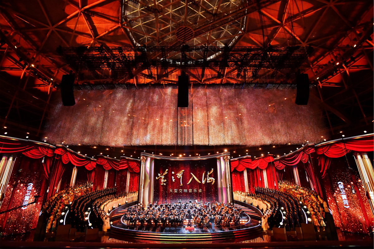 音乐会是黄河流域舞台艺术优秀剧目展演展播活动的首次演出,由上部《怒吼吧黄河(节选)》、下部《幸福母亲河(<我的母亲河>节选)》两部分组成,围绕中华民族伟大复兴的时代主题,唱响新时代新黄河的最强音。音乐会上,我校优秀校友、山东省话剧院国家一级演员王勇担纲主持,朗诵了诗歌《信心永恒》《相约第一百个春天》;我校优秀校友、著名演员靳东用诗朗诵情深串联起每一首作品。在音乐会上部中,音乐学院教授李鳌演唱了歌曲《黄河颂》,展现出中华民族保卫家国艰苦卓绝的壮丽图景,彰显出九曲黄河厚重的历史文化积淀,唱响母亲黄河、英雄黄河、革命黄河。我校客座教授廖昌永在音乐会下部演唱了歌曲《泰山颂》,特聘教授王庆爽演唱了歌曲《情满入海口》,演绎了齐鲁儿女赤子情怀的天地心和家国梦,与其他作品共同呈现了生态保护、国泰民安、乡村振兴、新动能与高质量发展、文明交汇、构建人类命运共同体等思想内涵,深刻阐释奋力实现中华民族伟大复兴的中国梦的鲜明主题,反映新时代、新黄河、新征程。我校音乐学院、现代音乐学院120余名学生演出了《保卫黄河》《我们是黄河泰山》《未来你好》等音乐会全部合唱节目,以青春之力演绎黄河的磅礴气势,以青春之歌赞颂黄河精神,振奋为中华民族伟大复兴而努力拼搏的民族精神。山艺师生以精湛的艺术表现为观众奉献了一场视听盛宴,得到了社会各界广泛好评。