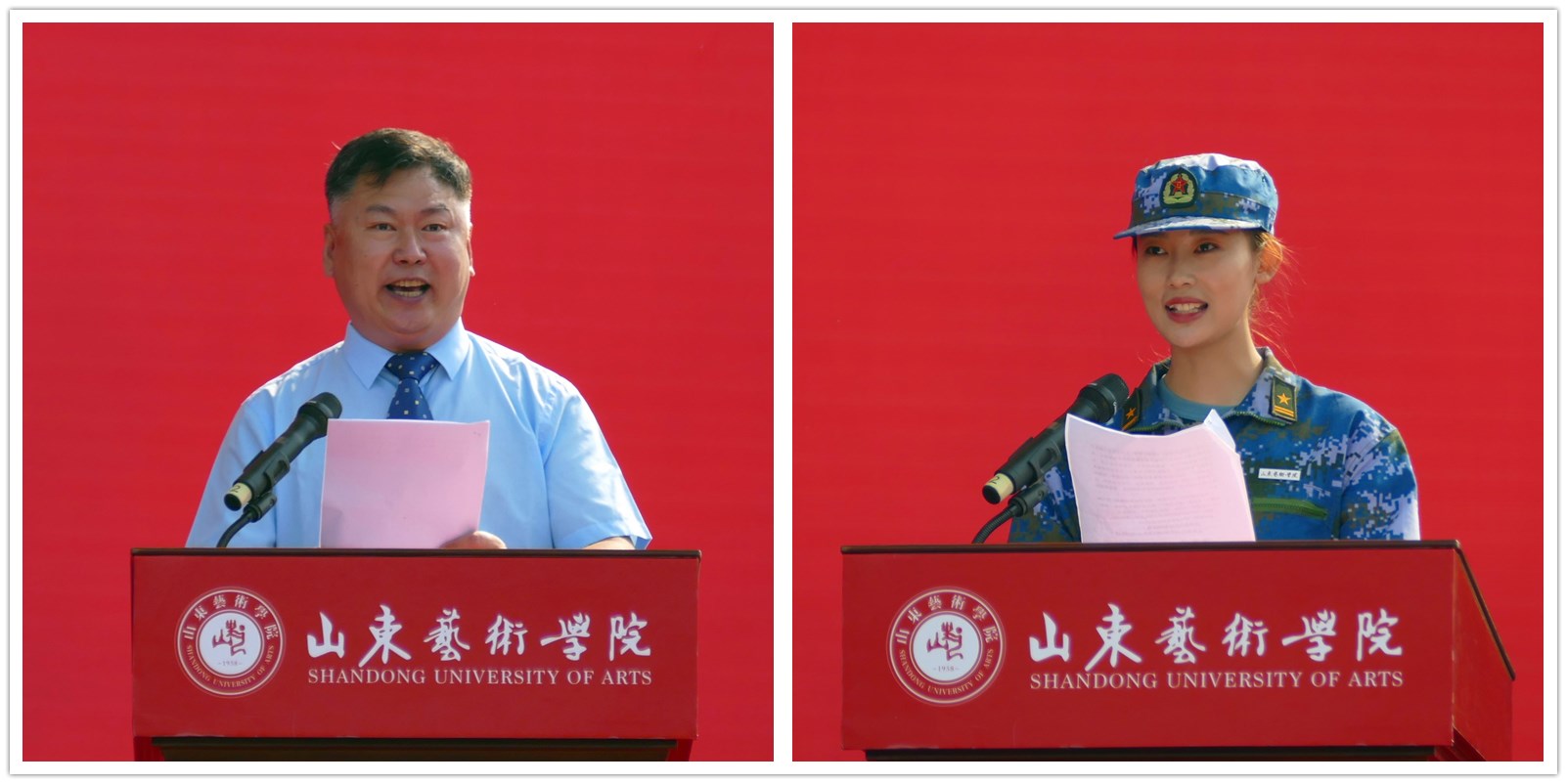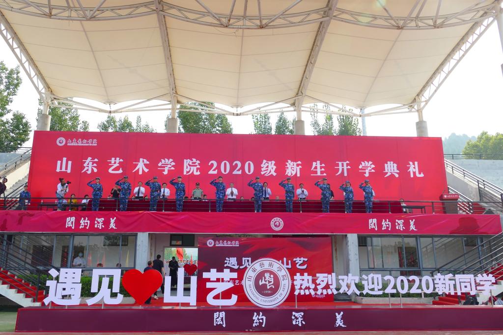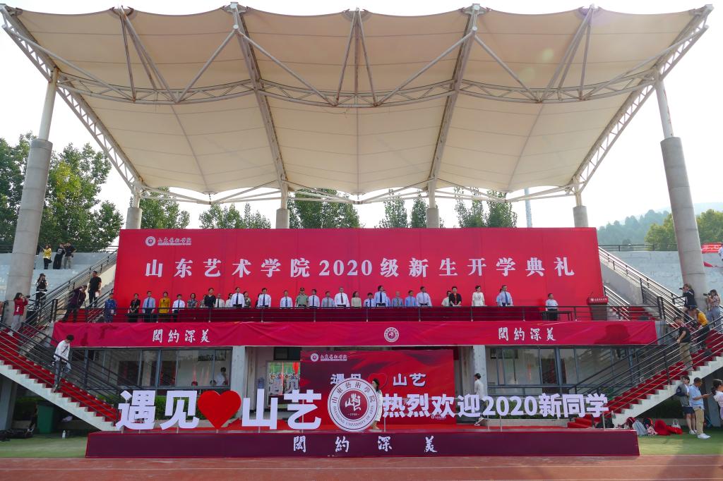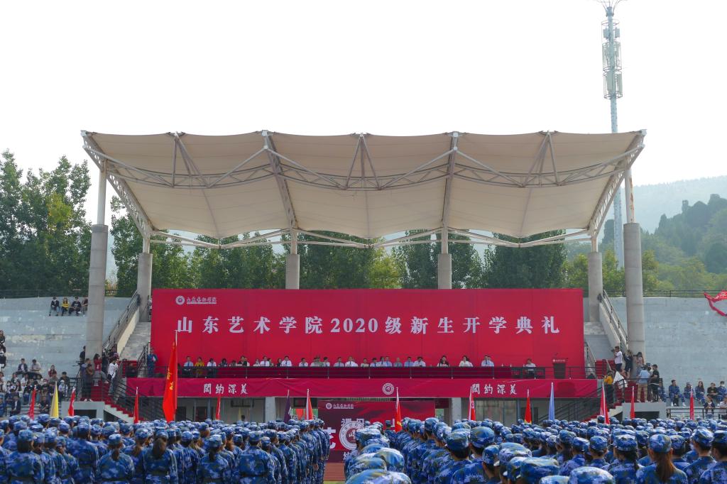 风雨过后,拥抱彩虹,金秋时节,遇见山艺。9月22日,我校2020级新生开学典礼在长清校区田径场隆重举行。学校党委书记马东骅、院长王力克,济南市长清区人民武装部部长李京进,学校党委副书记孔祥华,副院长杨西国、刘晓静、兰绍彤,纪委书记、省监委驻学校监察专员胡凤莹,党委委员荆雷、苏茂兴出席典礼,济南市长清区预备役军训教官,学校机关各部门负责同志,各二级学院党总支书记、院长,全体辅导员,大学生军训教官团全体教官,教师和高年级学生代表,长清校区2020级研究生、本专科生新生在现场参加典礼,文东校区新生通过视频直播方式参加典礼。典礼由孔祥华主持。