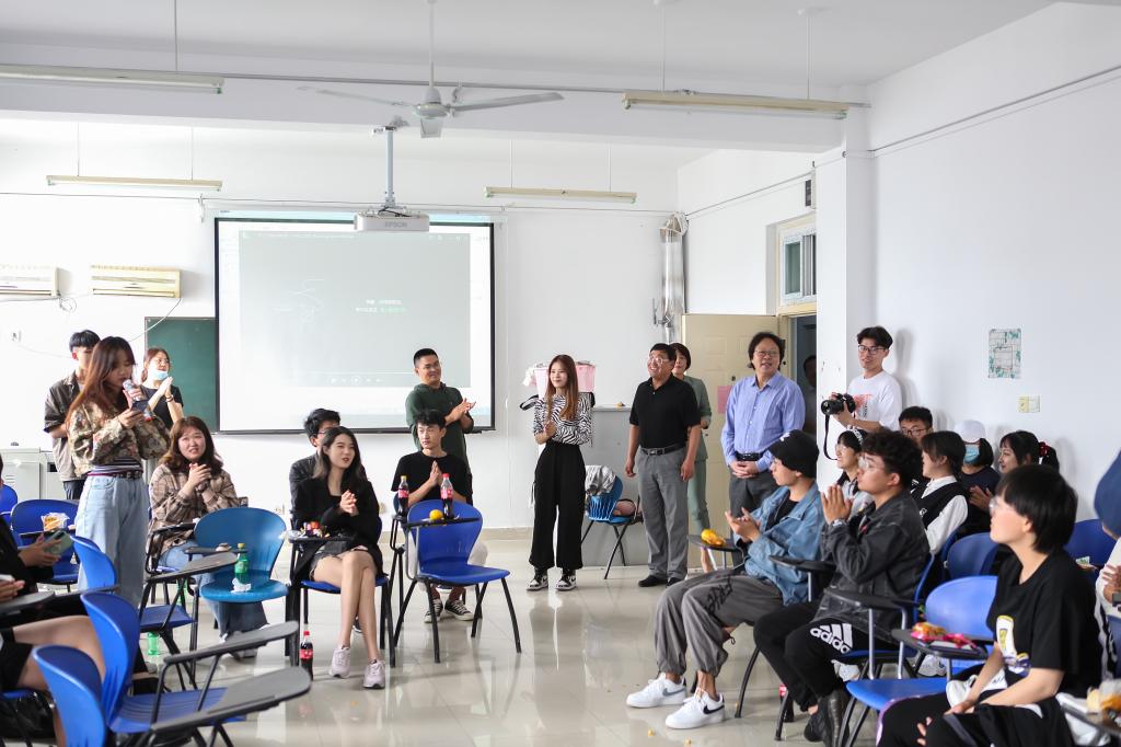 在设计学院,王力克、孔祥华和师生们一起参加联欢活动,并和大家一起向在今天过生日的五位师生表达了真诚的祝愿。在同学们的热情邀请下,王力克即兴演唱了歌曲《山楂树》,受到大家的热烈欢迎。在随后的致辞中,王力克表示立德树人是学校的根本任务,今年以来,学校克服疫情带来的不利影响,上下齐努力,狠抓工作落实,学校面貌发生了很大变化,就是要为同学们提供良好的学习、成长环境。希望同学们健康成长成才,这是学校最大的心愿。