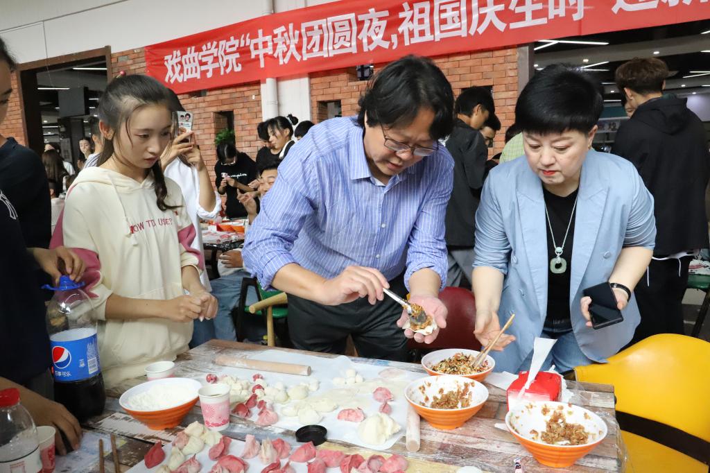 戏曲学院组织同学们在餐厅举行联欢活动,一起包饺子、做月饼、进行才艺表演。王力克、孔祥华来到同学们中间,和同学们“拉家常”、交流包饺子的经验技巧,并卷起袖子和大家一起包饺子。王力克鼓励同学们热爱传统文化、继承传统文化,热爱劳动,热爱生活,靠自己的双手去创造属于自己的美好生活,他希望同学们认真规划好自己的大学生活,通过四年的刻苦学习和努力锻炼,将来都能有满满的收获。