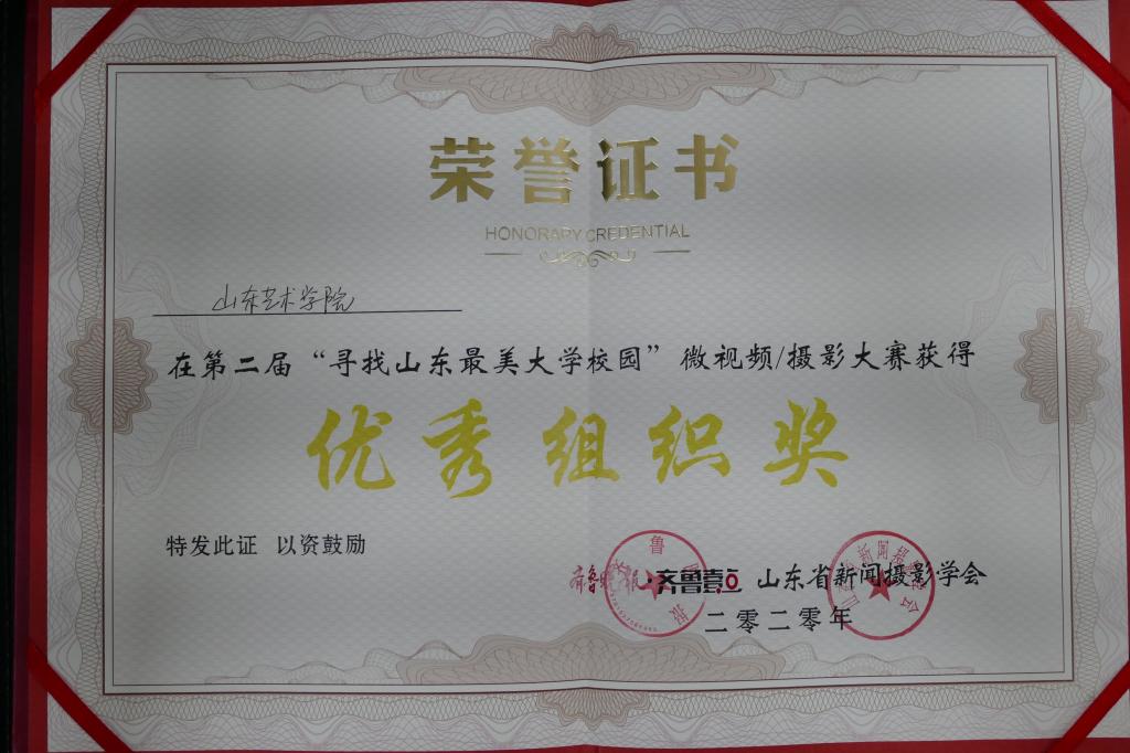 会上,由齐鲁晚报联合山东省新闻摄影学会举办的第二届“寻找山东最美大学校园”微视频、摄影大赛评奖揭晓。我校微视频作品《非凡之美》获得二等奖,《紫薇路花开的路口》《“醉”美山艺》荣获佳作奖,学校荣获 “优秀组织奖”。