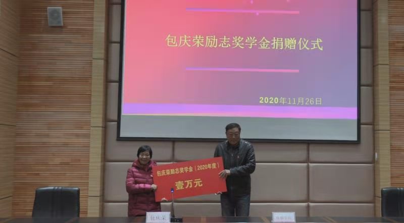 包庆荣在致辞中表示,她将每年向电影学院捐赠1万元设立奖学金,用来奖励家庭经济困难、品学兼优的大学生,并就奖学金设立的初衷、个人感悟等进行了分享。她希望山东艺术学院的莘莘学子刻苦学习、努力成才,为自己的理想而奋斗,将来成为帮助别人和对社会有贡献的人。
