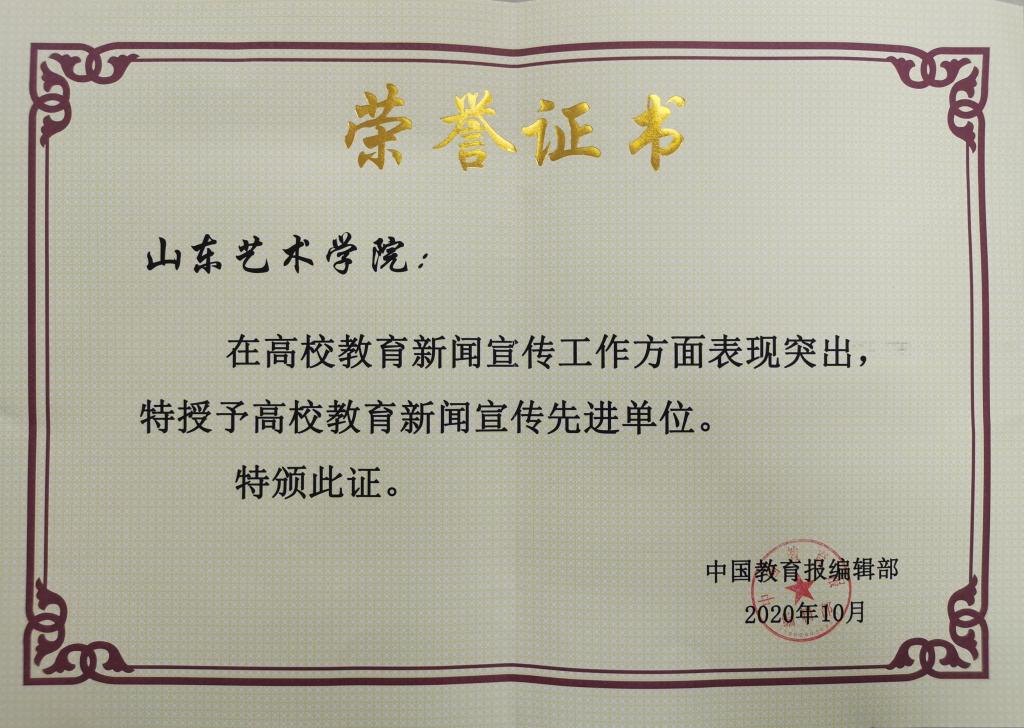 近日,中国教育报刊社山东新闻宣传通联工作会议在烟台牟平召开。会议对2020年度全省教育新闻宣传先进单位及优秀通讯员进行了表彰,我校荣获“高校教育新闻宣传先进单位”称号,党委宣传部董文化荣获“高校教育新闻宣传先进个人”。