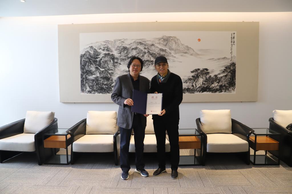 12月29日,北京画院副院长蔡玉水先生来到我校长清校区,为师生们作题为《艺术的使命是爱的使命》的学术讲座。讲座前,院长王力克向蔡玉水先生颁发了客座教授聘书,蔡玉水先生向我校图书馆捐赠了图书。山东省美术馆收藏部主任郭振宇及美术学院师生参加活动。学术讲座由美术学院副院长孙磊主持。
