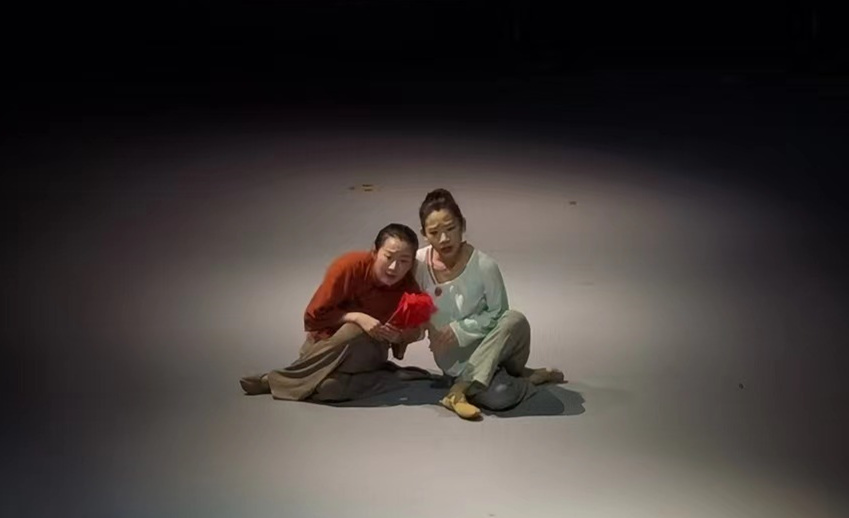 表演组现场展演作品《沂蒙母亲》由舞蹈学院青年教师刘忠创作,以妇孺皆知的“沂蒙母亲”王焕于老人的事迹为原型,讲述了一段沂蒙人民对党生死相许、感天动地的革命故事,演绎了爱党爱军、无私奉献、敢于牺牲的伟大沂蒙精神。创作组现场展演作品《守•望》由舞蹈学院2019级研究生张雅芹创作,旨在探寻传统民间舞蹈的根源与新生,作品中的两个角色分别代表了传统和现代观念下的民间舞,两者在缠绕中产生分歧,在分歧中寻找共生。
