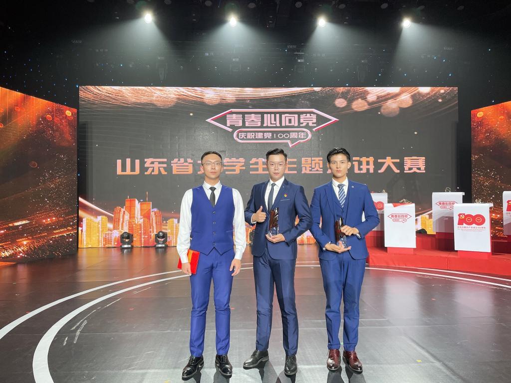 6月17日,由山东省教育厅、山东省语言文字工作委员会主办,山东省语言文字工作委员会办公室、山东教育电视台承办的“青春心向党”大学生庆祝建党100周年主题演讲大赛总决赛在山东教育电视台举行,我校推荐的戏剧学院孙啟翔、王瑞基、李耀国三位同学,分别获得冠军、亚军和一等奖。