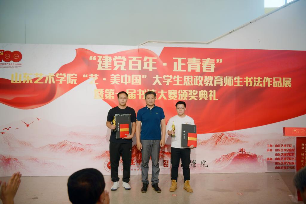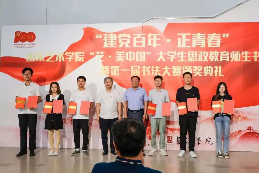 7月8日,为献礼党的百年华诞,以艺术呈现思政力量,“建党百年•正青春”山东艺术学院大学生思政教育师生书法作品展暨第一届书法大赛颁奖典礼在长清校区美术馆举行。山东艺术学院院长徐青峰,党委副书记孔祥华,中国书协副主席、省书协主席、书法学院院长顾亚龙,党委委员苏茂兴,中国书协会员、省青年书协副主席、山东画院山东书法院秘书长刘上林出席典礼。学校相关职能部门负责人、书法学院党政负责人,二级学院学工干部代表、学生代表参加活动。典礼由书法学院党总支书记李付魁主持。