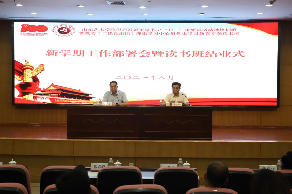 徐青峰对新学期工作进行了安排部署。一是全面从严加强党的建设。进一步强化科学理论武装,高标准高质量做好省委巡视反馈意见整改,选人用人、意识形态工作责任制专项检查反馈问题整改工作;持续推进党史学习教育走深走实;开展第三轮校内巡察,认真履行意识形态工作责任制,从严监督管理干部,加强对廉政风险重点部位和关键环节的监督检查;扎实开展净化校园政治生态专项教育整顿工作,完善作风建设长效机制;组织完成部分民主党派换届工作。二是认真落实立德树人根本任务。制定实施健全“三全育人”机制和“十大育人”体系实施方案,进一步加强体育、美育工作,把劳动教育工作要求落实到位;严格执行“马工程”教材选用、审核、征订的有关要求;全力做好新一轮国家级、省级一流专业和一流课程申报工作;完善本科教学评估机制,全面推进课程思政建设,推动课程教学范式改革,健全学分银行运行机制,完成智慧教室空间建设项目、混合式实验教学创新基地建设项目;申报山东省应用型本科高校;规划产教融合整体方案,制定2022年本科招生考试改革方案,全面修订研究生人才培养方案。三是持续强化学科建设。制定实施《2021—2023年博士单位申建工作方案》《学科建设管理办法》,开展学校科研创新平台建设工作,实施重大科研攻关计划;举办第二届全国歌剧理论与创作研讨会暨山东省泰山论坛;制定实施师生国际交流活动管理办法,提升教师和学生培养的国际化水平;积极组织优质稿件,持续扩大学报学术影响。四是深入推进艺术实践与创作工作。出台学校加强新时代艺术创作的实施意见,制定实施艺术创作专项规划,做好国家艺术基金申报工作;积极备战第十三届全国舞蹈展演、中国舞蹈“荷花奖”民族民间舞比赛及现当代舞比赛。五是深化干部人事制度改革。健全与岗位职责、工作业绩、实际贡献紧密联系的绩效分配制度;制定学校《工作业绩评价指导标准》;修订学校绩效工资分配办法;组织实施工作人员首聘期满考核;通过柔性引进、公开招聘等方式重点对急需专业教师岗位补充高层次人才;出台加强师德师风长效机制建设实施方案,制定学校师德考核办法。六是加强学生教育管理服务。做好“艺·美中国”大学生思政系列教育、“廉美山艺”和“中国精神”工作;持续加强学生工作制度建设;加强辅导员培训规划,进一步做实、做细辅导员培训的年度计划安排;做好军事理论课程建设评估准备工作;实施团组织“第二课堂成绩单”制度,推动大学生素质拓展工作规范化、课程化、制度化。七是持续推进治理体系和治理能力现代化。完成“十四五”事业发展规划的分项规划编制,加强办学特色内涵研究阐释和宣传教育,逐项落实新时代教育评价改革、省属高校考核反馈问题整改、推进依法治校等重点工作任务清单,完善以《山东艺术学院章程》为核心的规章制度体系,深化校院两级管理体制改革;发挥以学术委员会为核心的学术组织作用;落实《二级教职工代表大会实施细则》;召开学校第三次团代会;健全学校内部治理结构,成立理事会、校务委员会;举行山东艺术学院校友会成立大会;进一步完善山东艺术学院教育发展基金会建设。八是建设安全稳定和谐校园。全力做好省级文明校园创建工作;毫不放松抓好常态化疫情防控工作;深化平安校园建设;全面加强和改进学校保密工作;加强信访工作,探索建立听证制度、制定校内权益救济制度;扎实落实“我为群众办实事”承诺事项。九是进一步夯实保障支撑。建立健全学校内控管理机制,开展合同管理与执行情况专项整治、资产管理专项整治工作,严格执行《预算绩效管理办法》,制定学校收入管理办法,持续推进审计发现问题整改;制定《项目库建设与管理办法》,开展厉行节约反对浪费、培养节约习惯专项自查自纠工作;加强图书馆馆藏资源建设,推进智慧校园建设,持续提升信息化水平。