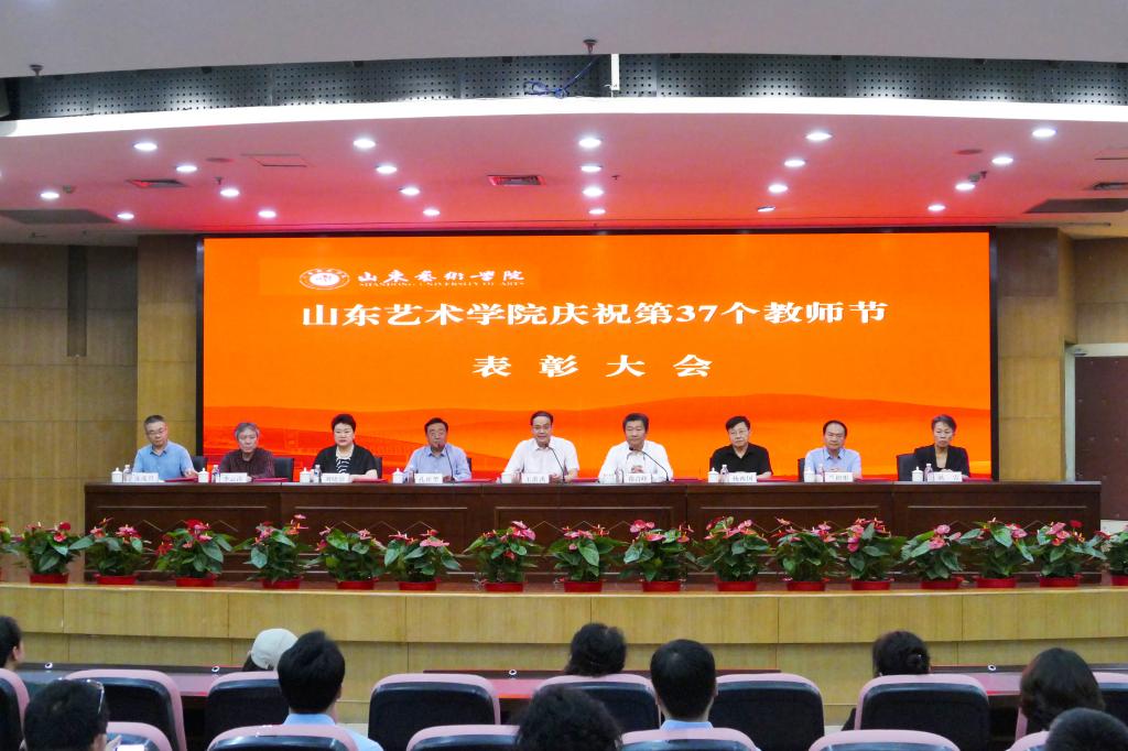 王洪禹代表学校党委向辛勤耕耘在教学、科研、管理、服务各岗位的全体教职员工致以节日的问候和崇高的敬意。他指出,山东艺术学院素有尊师重教的优良传统,学校63年的发展历程中涌现出许多德艺双馨的教师典范。今年学校制定《山东艺术学院关于荣誉体系建设的若干规定》,隆重举办教师节表彰大会,首次评选表彰“四有”好老师、干事创业优秀工作者,就是为了进一步营造尊师重教的良好校园生态,引导广大教师切实落实立德树人根本任务,激发广大教师的荣誉感、获得感,增强向心力和凝聚力,引导师生员工时刻坚守理想信念,筑牢师德师魂,贡献学校发展,促进学生成才,让尊师重教成为校园最美的风尚。