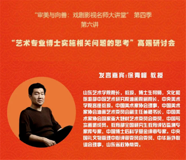徐青峰指出,艺术专业博士是我国艺术专业学位研究生教育实现高质量内涵式发展的重大契机,是遵循和顺应艺术专业学位研究生教育发展规律的务实之举,也是回应国家和区域经济社会发展对高层次实践性人才旺盛需求的关键环节。设置艺术专业博士学位是专业学位研究生教育发展的内在要求,是艺术硕士专业学位学子的现实诉求,也是满足高校高层次人才引进的迫切需要。要竭力探索艺术专业学位博士招生选拔体制机制,严把入口质量关;重视培养过程中的“因材施教”;明晰学位论文标准,严把出口关。艺术专业博士既要注重对艺术创作的肯定,同时也要有对技能、审美以及人文社会科学理论体系的拓展。