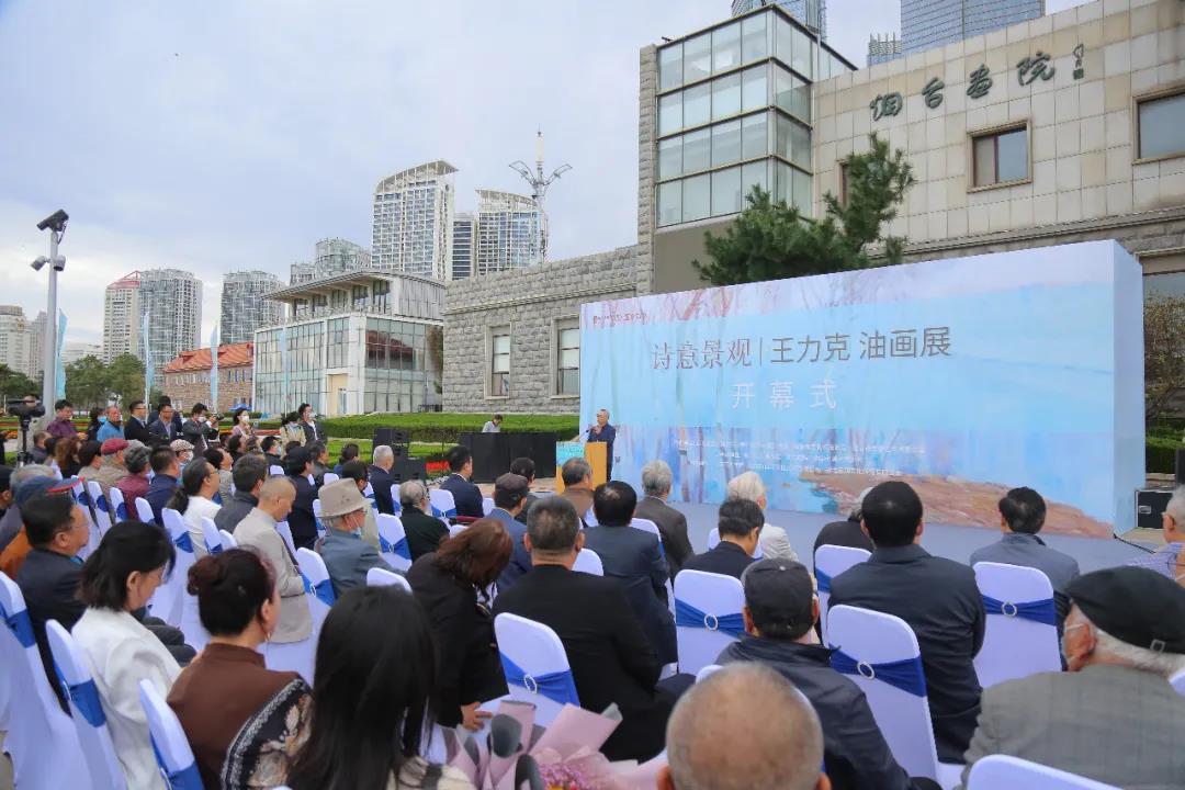 10月10日,由山东省美术家协会、中共烟台市委宣传部主办,烟台美术博物馆承办,山东艺术学院协办的“诗意景观——王力克油画展”开幕式在烟台美术博物馆举办。烟台市委常委、宣传部长于永信,国家文化和旅游公共服务专家委员会委员、中国非物质文化遗产保护协会副会长、原省文化厅厅长亢清泉,山东省美术家协会主席张望,山东艺术学院院长徐青峰出席开幕式并致辞, 山东艺术学院谭智群教授宣读省美协油画艺委会贺信。山东艺术学院原党委书记马东骅、原副院长杨松林,著名主持人、我校杰出校友倪萍,北京太阳圣火广告有限公司董事长、我校杰出校友童年等嘉宾及烟台市相关领导、艺术家代表、驻烟艺术院校、新闻媒体等二百余人参加开幕式。