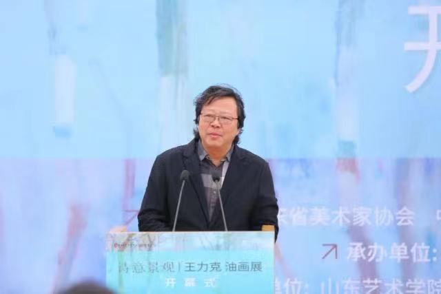 徐青峰在致辞中讲到,王力克教授是刚刚从山东艺术学院卸任的前任院长,也是一位有着卓越成就的油画家,长期从事油画实践,在人物肖像、风景写生、大型主题性历史画创作等方面都取得了令人瞩目的成绩。王力克教授的油画造型坚实、色彩丰满、亲近自然、关注生活,他的人物画注重以形写神,他的风景画注重和谐意境,始终给人一种心灵的暖意,让我们感受到自然和生活的美好。王力克教授的作品体现出山艺油画所特有的“有温度”的油画语言和艺术风貌,继承和发扬老一代教育家建立的优秀传统,是山东艺术学院 专业创作和实践持续发展的力量之源和根本保证。衷心希望山艺中青年艺术家能够夯实基础,开拓创新,推动山艺艺术教育和创作在新的历史时期取得更大的辉煌。
