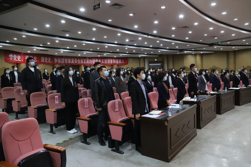 图书馆报告厅会场里悬挂着“学党史、强信念、跟党走,争做德智体美劳全面发展的社会主义建设者和接班人”的大幅标语,主席台幕布上,团徽中鲜红的团旗和“中国共青团”五个金字分外耀眼。从全校14个选举单位万余名团员青年中选举产生的121名代表参加大会。