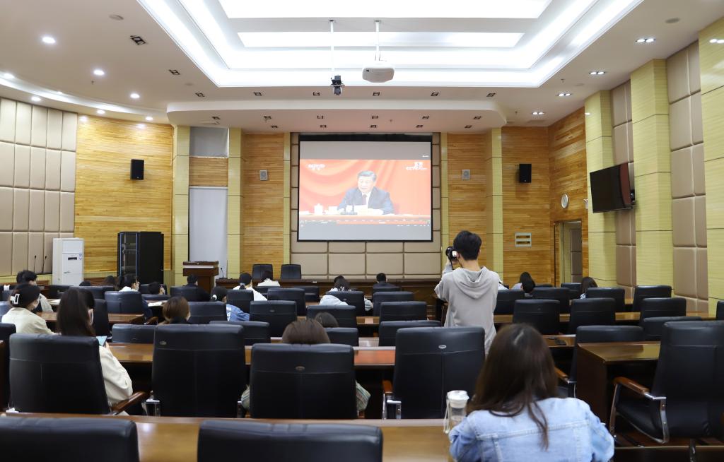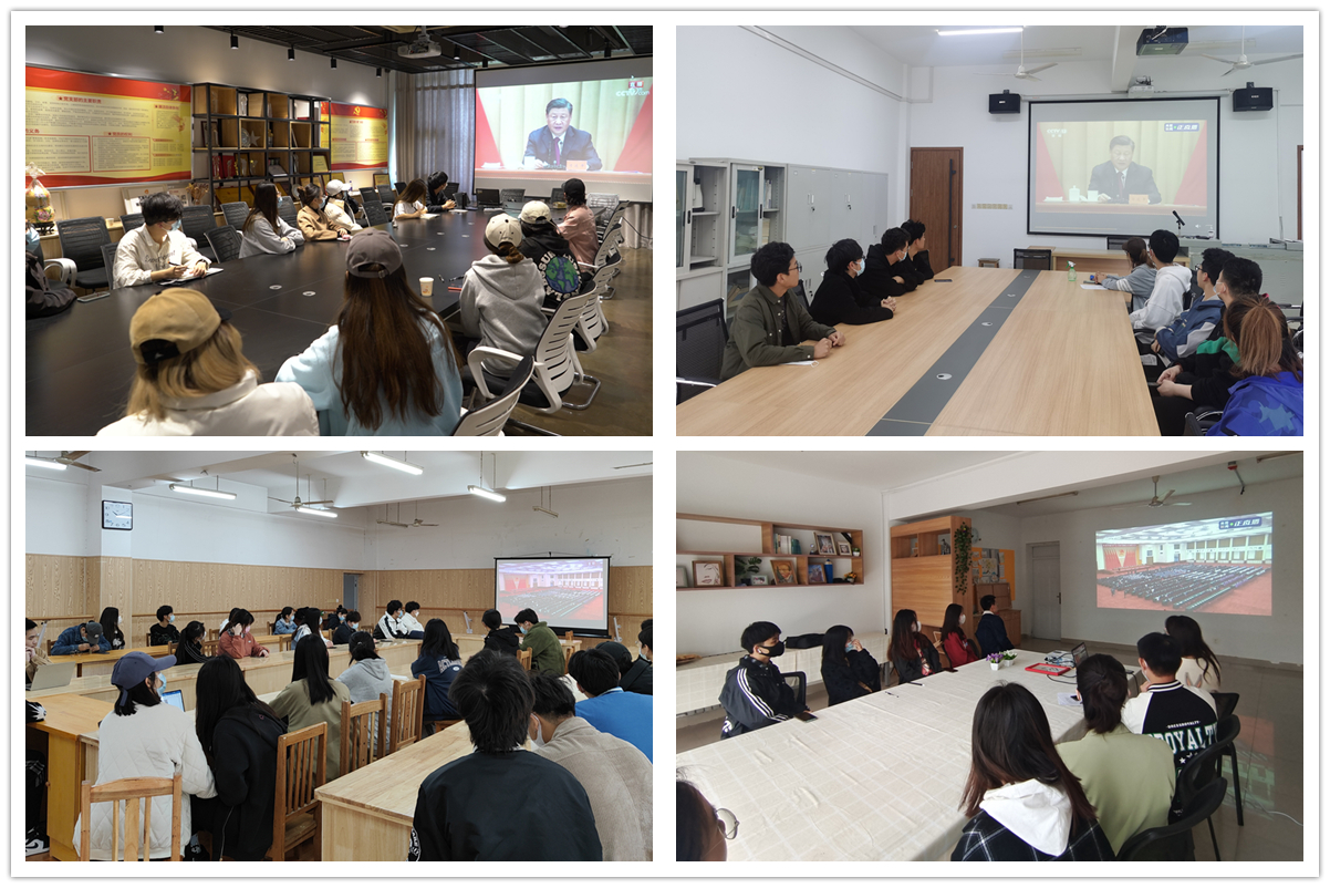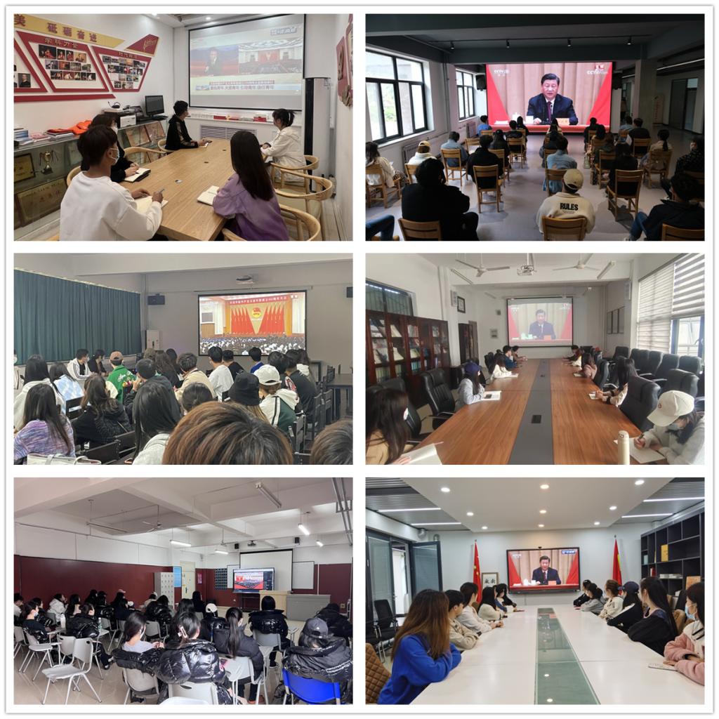 5月10日上午,庆祝中国共产主义青年团成立100周年大会在北京人民大会堂隆重举行。习近平总书记出席大会并发表重要讲话。在长清校区办公楼二楼报告厅,党委副书记孔祥华,学生工作部、团委负责人,团总支书记以及“两红两优”受表彰对象、校学生会组织、学生社团负责人等团员青年代表进行集中观看。各二级学院在做好疫情防控的前提下,组织全体团员青年通过电视、网络、广播等方式进行了收听收看。