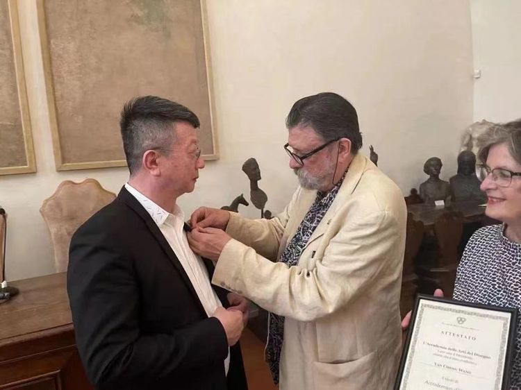 6月21日,在意大利国家艺术院总部,经院委会国际遴选和院士表决通过,决定授予我校1981级校友、著名艺术家王衍成终身院士。意大利国家艺术院院长克里斯蒂娜·阿奇蒂尼及绘画院院长安德烈·格朗齐为王衍成颁发证书及徽章。