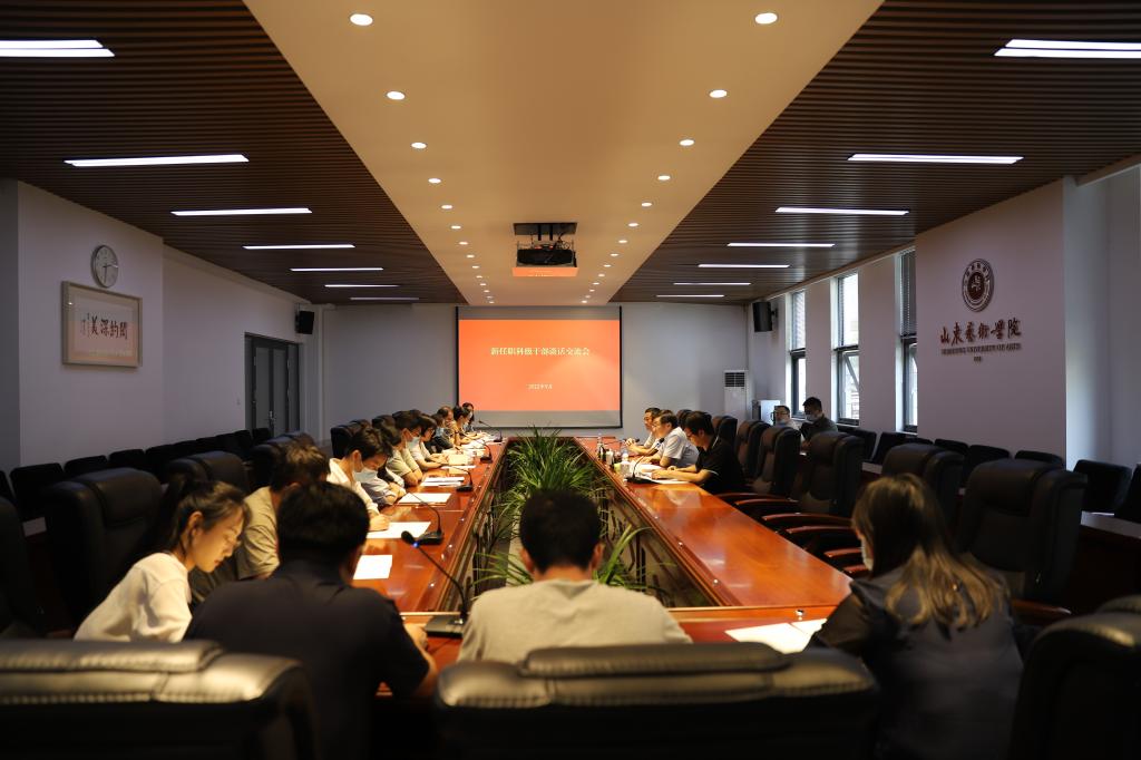 9月13日,学校在长清校区第一会议室召开新任职科级干部谈话交流会。党委副书记杨西国出席会议并讲话,纪委机关相关负责人、新任职科级干部参加谈话交流会。会议由党委委员、组织部部长孔亮主持。