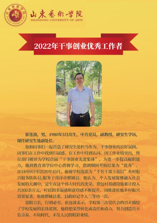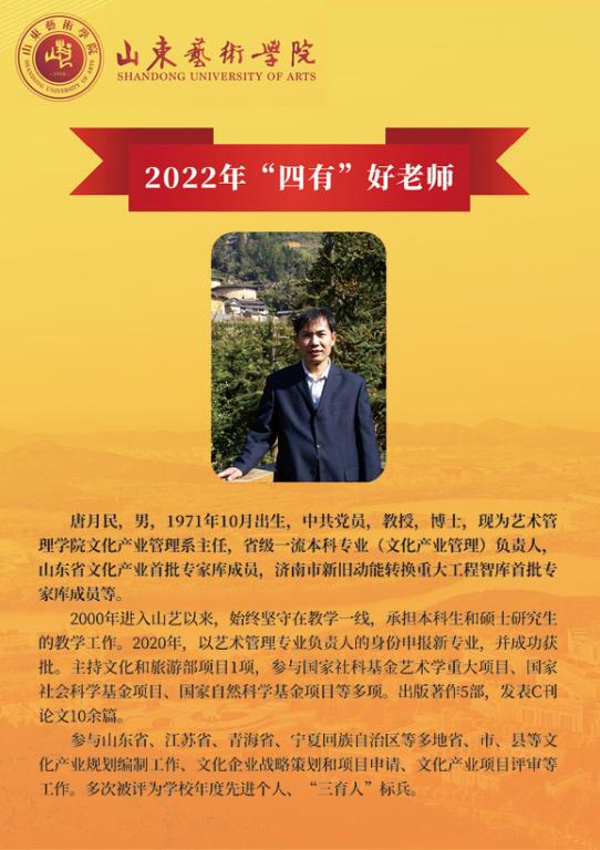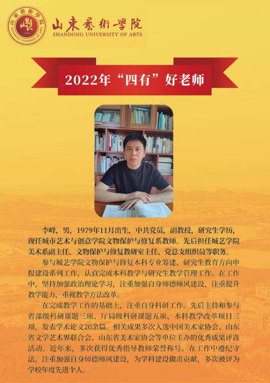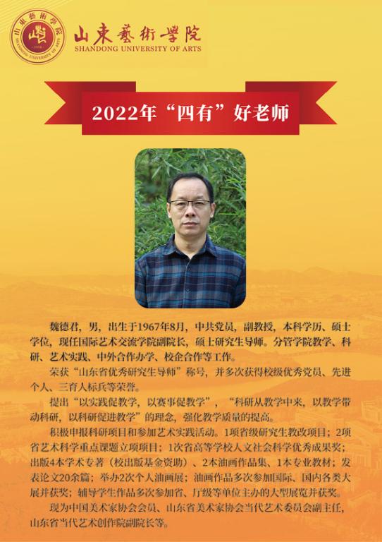 坚守立德树人初心,担当教书育人使命。为庆祝第38个教师节,学校在长清校区宣传栏举办了2022年“四有”好老师、干事创业优秀工作者风采展览。本展览主要展示学校评选表彰的2022年度“四有”好老师和干事创业优秀工作者。