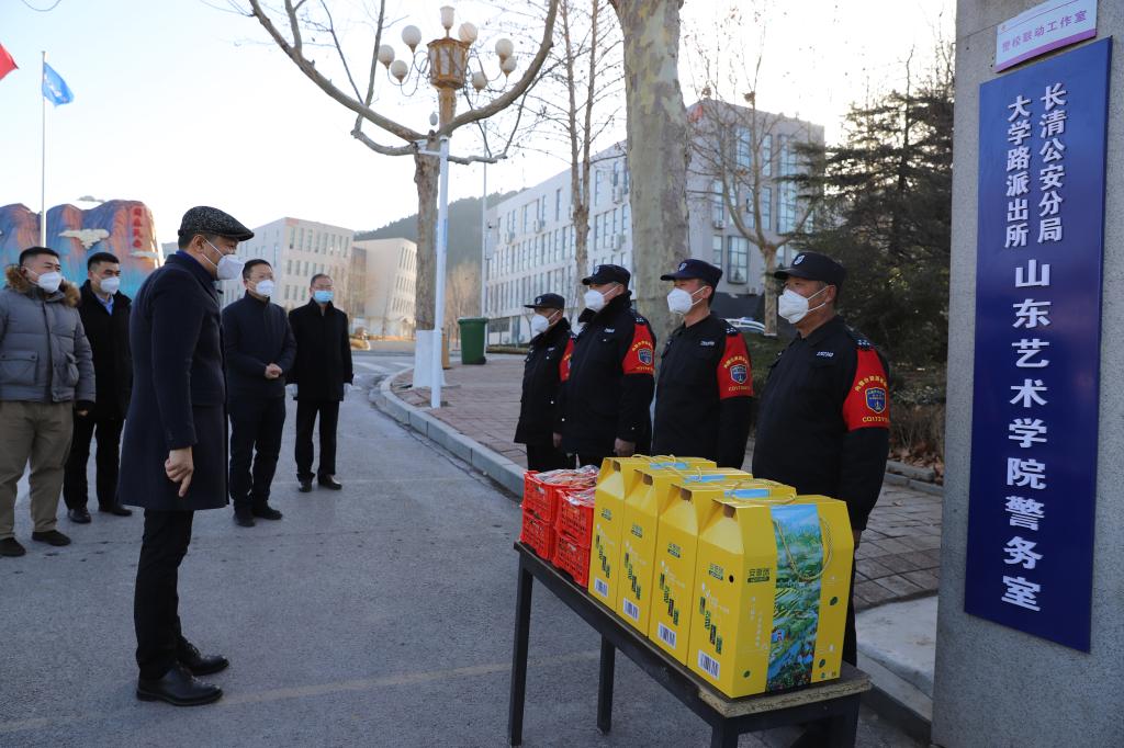 徐青峰一行来到长清校区办公楼值班室、学生公寓值班室、校门值勤室,文东校区综合楼值班室、校门值勤室、医务室、学生公寓值班室等处,看望坚守岗位的干部职工,为他们送上节日慰问品。每到一处,徐青峰都与值班干部职工亲切握手、互致问候,详细了解值班人员工作情况,对他们恪尽职守、严格规范开展工作给予高度认可,对他们爱岗敬业的态度和乐于奉献的精神给予充分肯定,并勉励大家保重身体,劳逸结合,全力以赴做好寒假及春节期间的安全保卫、后勤保障等工作。