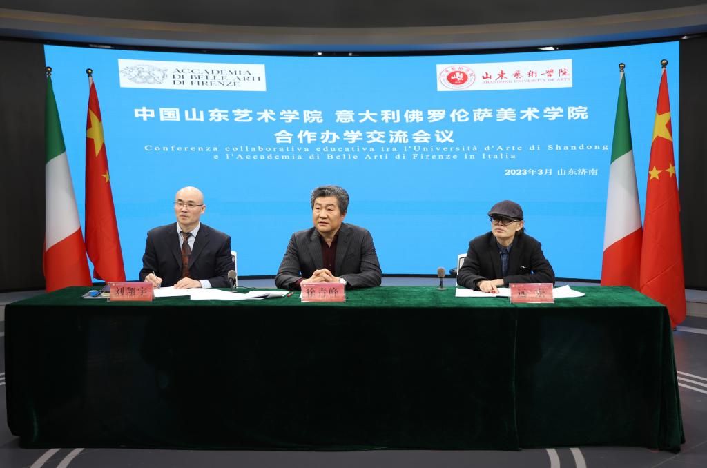 3月7日下午,我校与意大利佛罗伦萨美术学院在长清校区实验中心以视频会议方式举行交流合作会谈。山东艺术学院院长徐青峰教授、佛罗伦萨美术学院院长克劳迪奥·罗卡教授、佛罗伦萨美术学院中国合作处中心主任郭琳女士和翻译张蒙出席,会议由国际交流合作处负责人主持,设计学院相关负责人参加会议。