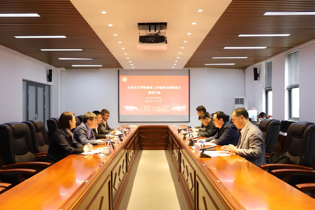 在长清校区第一会议室,与会领导、学校相关职能部门负责人就深入开展校地合作、服务毕业生就业等进行座谈。杨西国介绍了学校基本情况,以及近年来在专业建设、学科评估、人才培养等方面取得的成绩。学生工作部(处)负责人介绍了2023届毕业生就业工作情况。崔向军介绍了淄博市人才政策及艺术类毕业生就业相关情况。校地双方还围绕人才培养、美育合作、大学生社会实践、艺术创作展演、学校基础设施建设等方面进行了沟通交流。