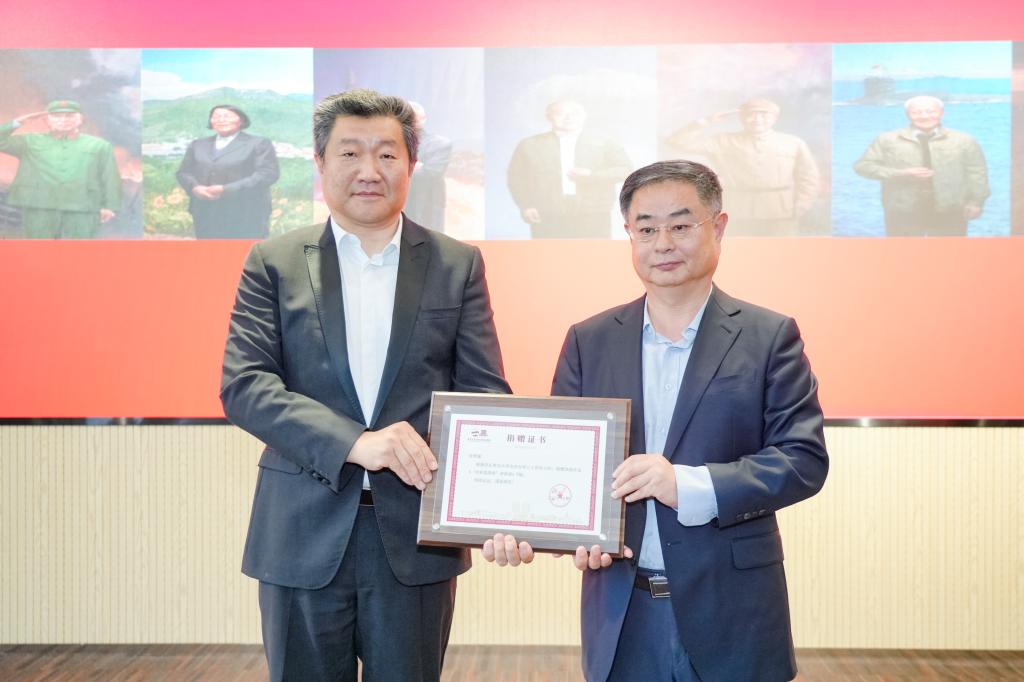 仪式上,夏东伟接受徐青峰团队的画作《“共和国勋章”获得者》,并为徐青峰颁发捐赠证书。